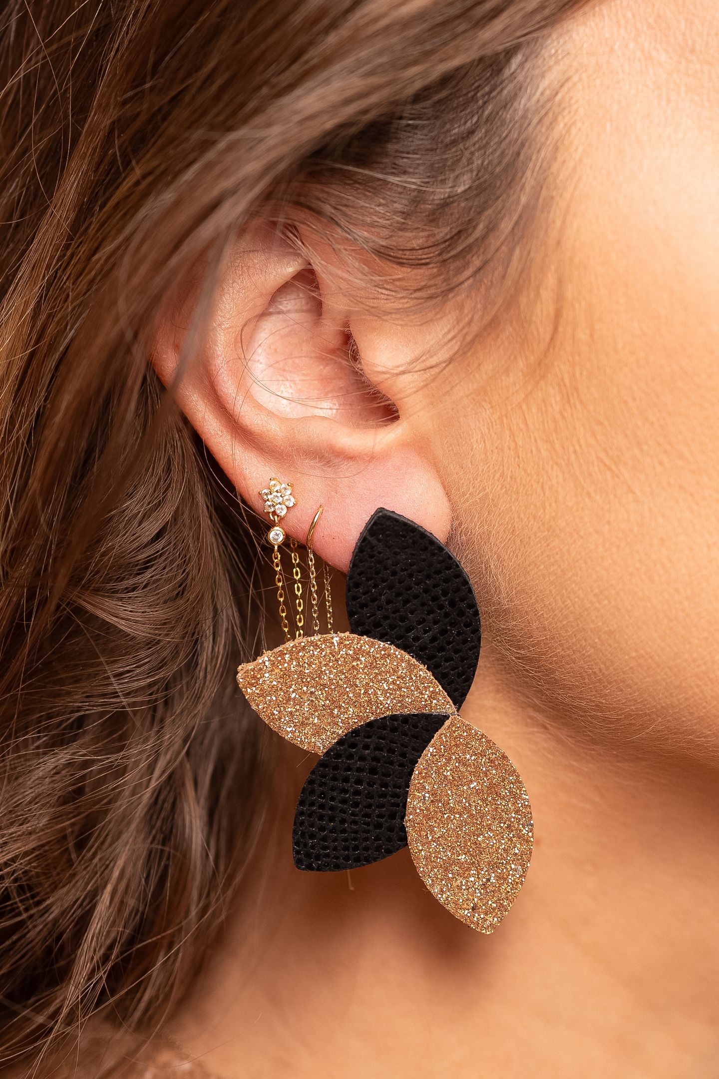 Boucles d'oreilles demi-fleur en cuir écaille de serpent