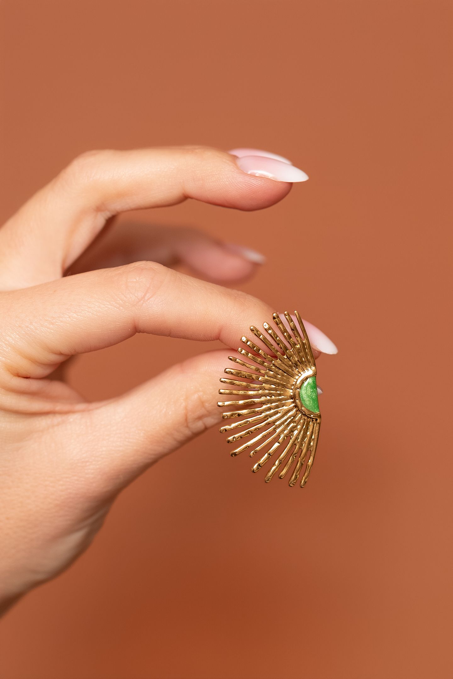 Les BO Soleil dévoilent un design sculptural en demi-soleil, conçu pour épouser délicatement les courbes du visage. Leur silhouette lumineuse apporte une élégance éclatante, une brillance sophistiquée et cette touche précieuse qui sublime instantanément une tenue, qu’elle soit minimaliste ou résolument couture.